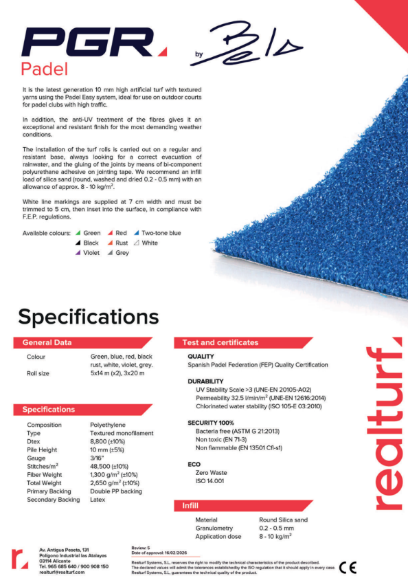 Utvecklad av Realturf i samarbete med Padel Galis et Fernando Belasteguin PGR by Bela är en del av en ny metod: